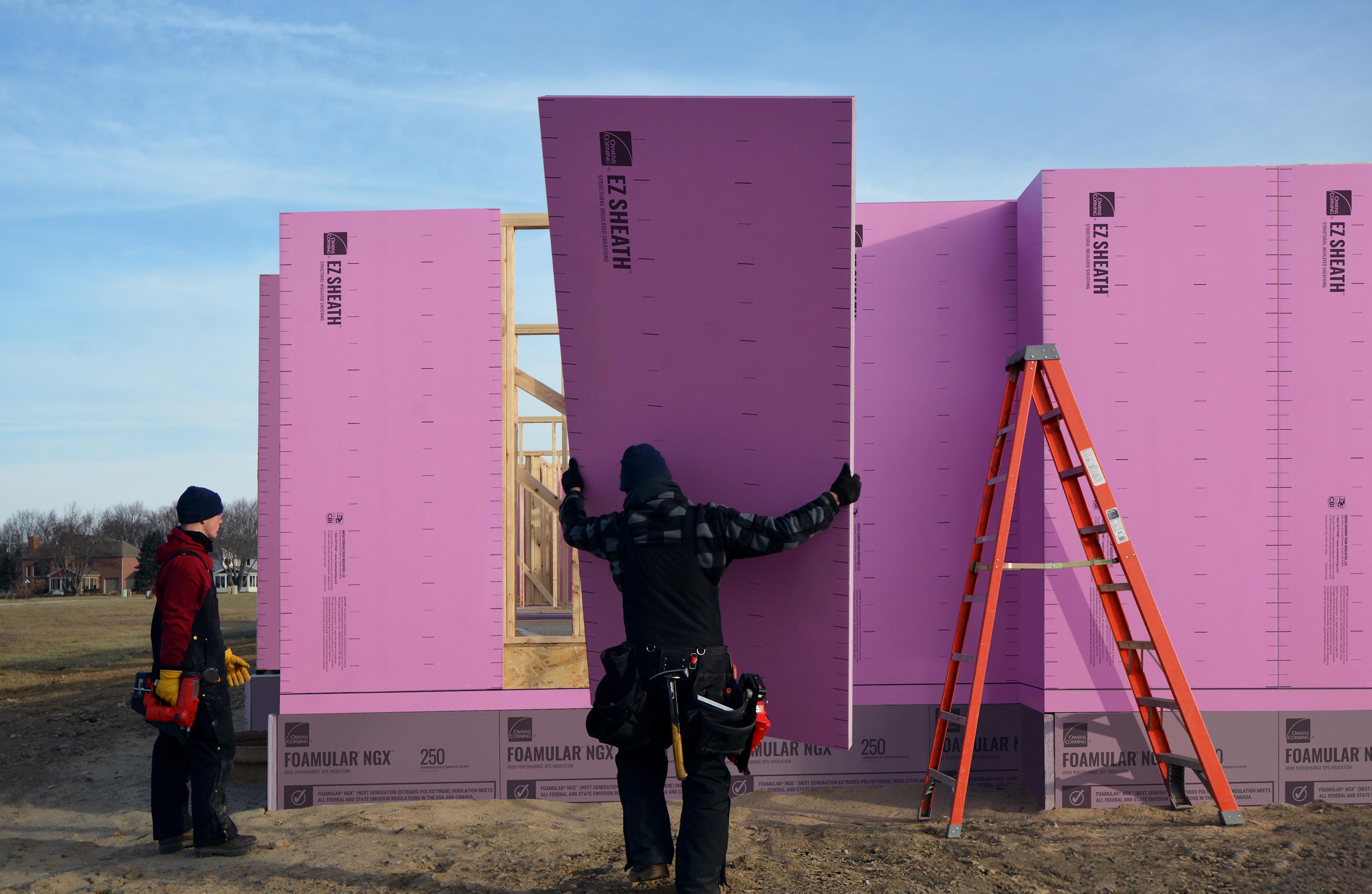 ezsheath™ is built with FOAMULAR® NGX® XPS insulation and durable polymer layers to form a single composite panel. Instead of installing multiple materials, ezsheath delivers structural sheathing, continuous insulation, and moisture resistance -- All in one panel. One install.