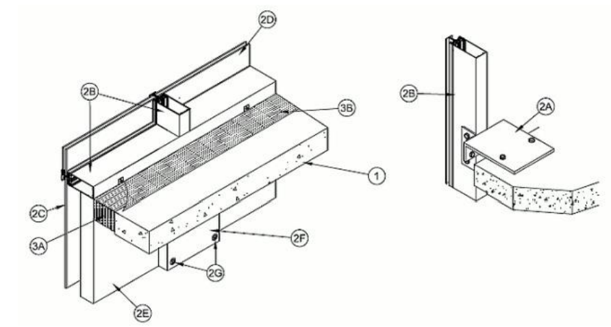 H. Aluminum Sandwich Panel — (Optional, Not Shown) - Min 1/8 in. (3.2 mm) solid aluminum panel or aluminum composite panel installed on exterior surface of curtain wall insulation (Item 2E).