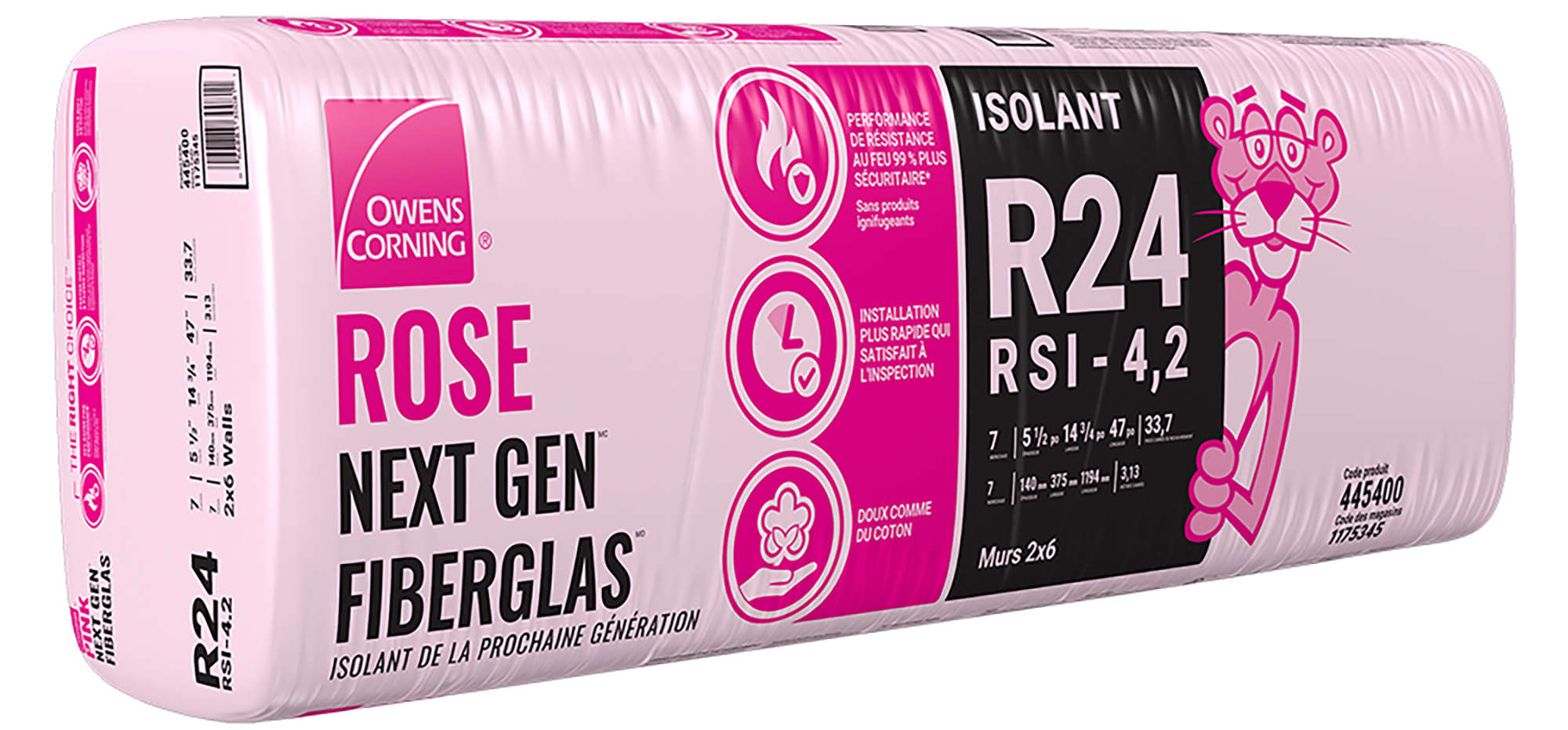 Isolant ROSE NEXT GEN FIBERGLAS Produit moins de fumée que les isolants combustibles