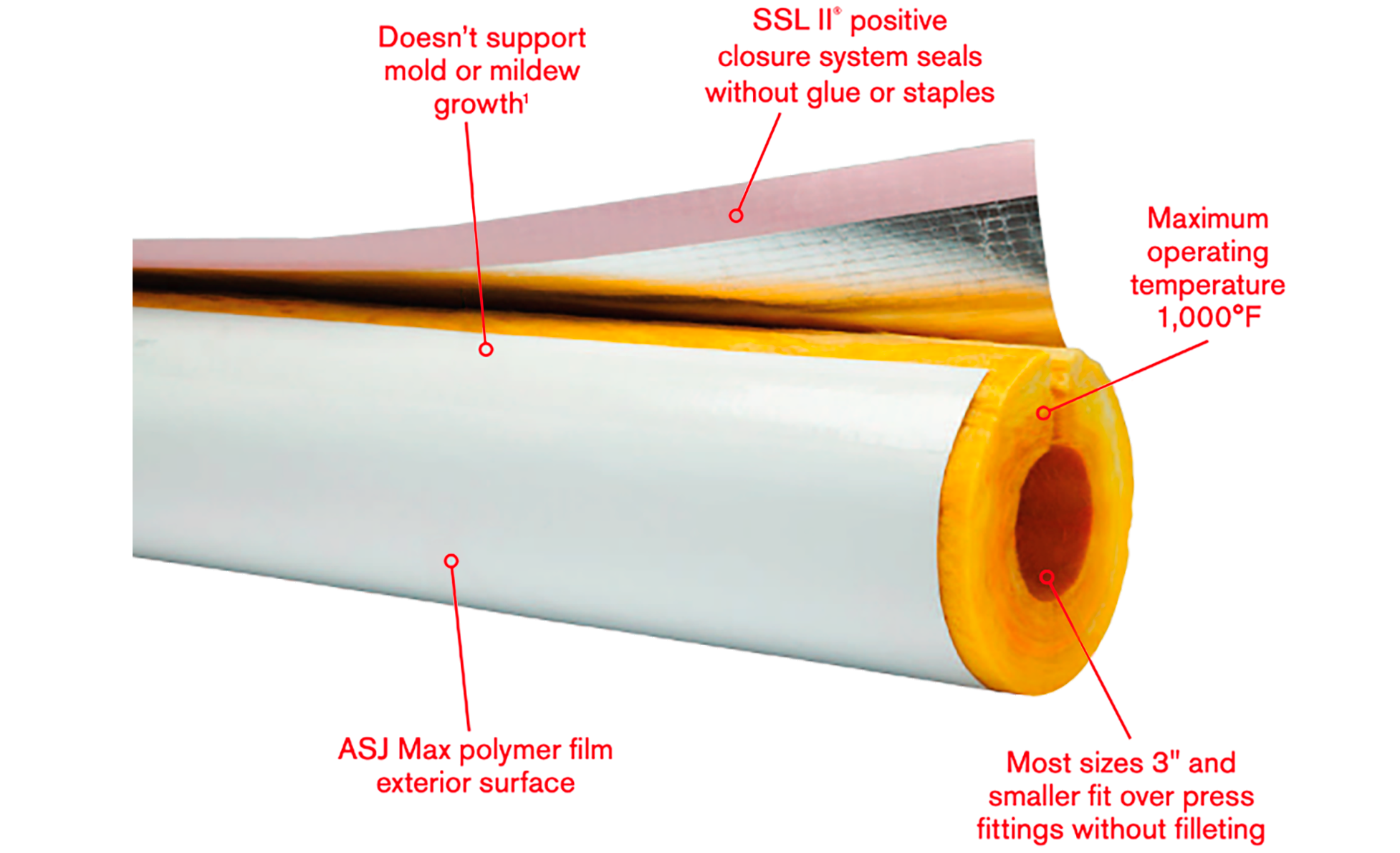 Here is more information regarding the use and installation of our SSL II® with ASj Max Fiberglas™ Pipe Insulation.
