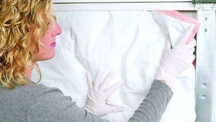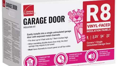 Keep your garage warmer in the winter and cooler in the summer with the Garage Door Insulation Kit from Owens Corning. This kit includes eight fiberglass insulation panels with a durable, washable white vinyl facing designed to fit snugly between the steel channels of uninsulated metal garage doors. Each kit provides enough material to insulate a single-car garage door up to 9’ wide by 7’4” high, making it a convenient solution for residential garage door insulation.