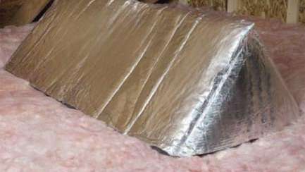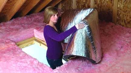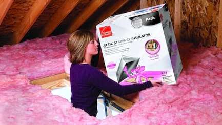 This easy-to-install attic stairway insulator closes the insulation gap created by attic stair access. The Attic Stairway Fiberglass insulation Kit is comprised of a durable, Pink Fiberglas insulation and tough, highly reflective foil. Adding attic stair insulation helps improve energy efficiency in homes year-round by reducing air leaks where conditioned air escapes.