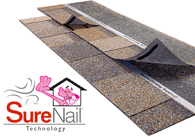 It's the nailing line on your shingles. The difference between a good shingle and a great shingle is having SureNail® Technology. With SureNail® Technology, strength and durability are built into every Duration® Series shingle, thanks to the unique fabric strip in the nailing area. This unique shingle design provides outstanding gripping power.