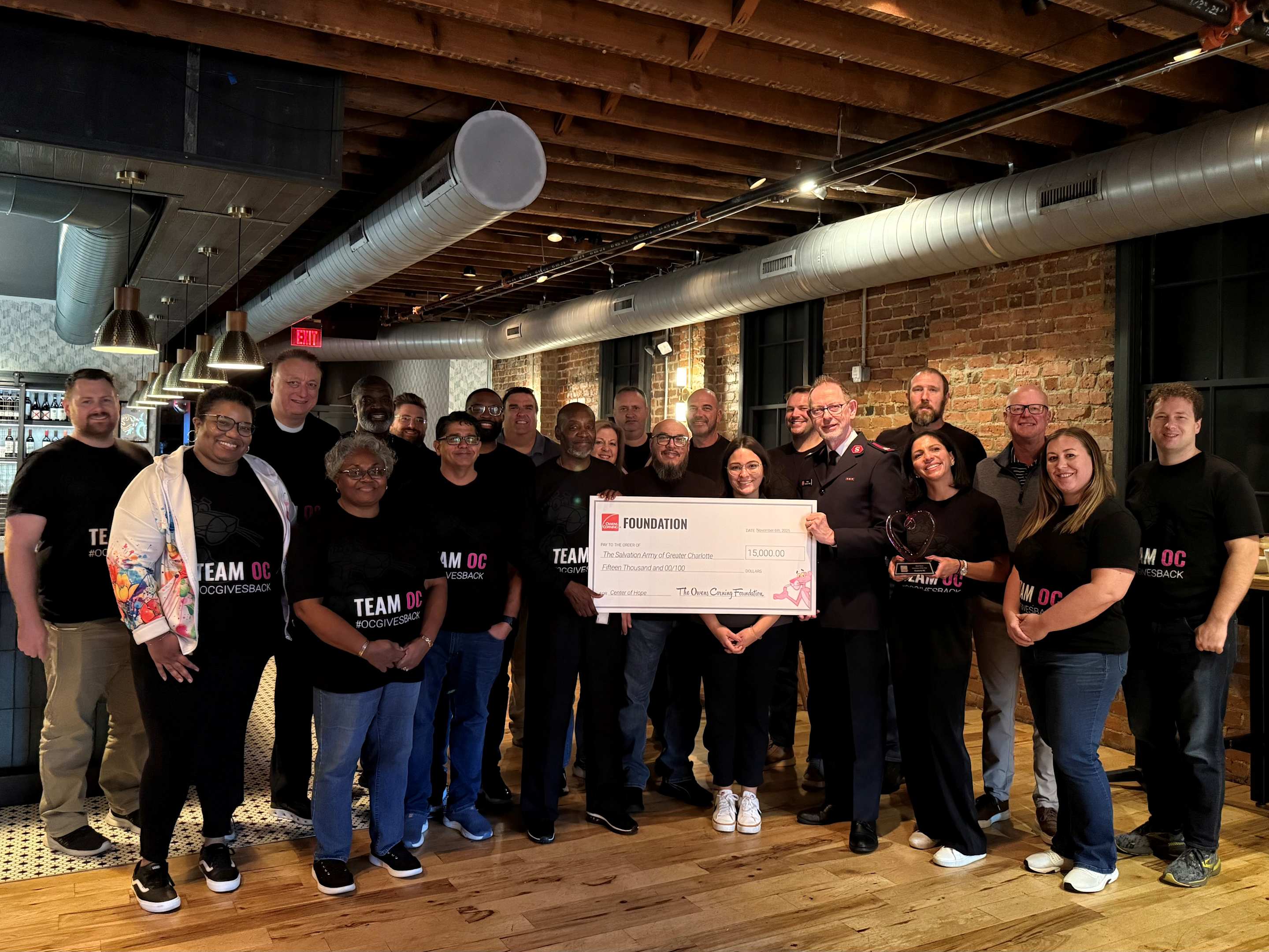 Volunteer honorees are given the opportunity to direct a $15,000 donation from the Owens Corning Foundation to the charity of their choice. The Charlotte team has selected the Salvation Army Center of Greater Charlotte as the recipient.